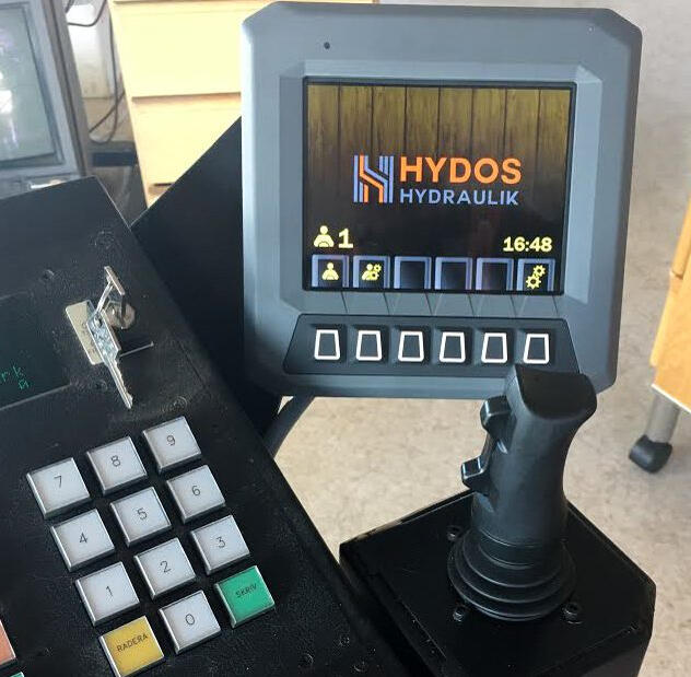 Vårt styrsystem Hydos Crane Control baseras på Danfoss och är anpassat för stationära kranar. Systemet fungerar med både Parkers och Danfoss ventiler och spakar. Om du till exempel redan har en Danfoss-ventil kan du ändå välja Parkers spakar. Ställ sedan in ramptider och hastigheter för varje funktion och förare. Möjlighet att styra flera kranar finns.